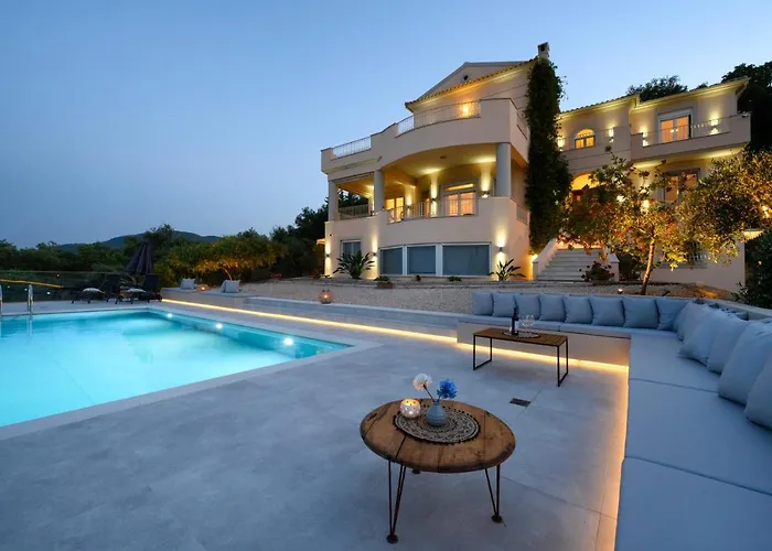 Az Aeras Luxury Villa 4 km-re van a Jónio Egyetem területétől és egy 4 hálószobás ingatlant kínál terasszal. A villa szobáinak felszerelése közé tartozik a személyes széf, öltöző és kanapé.